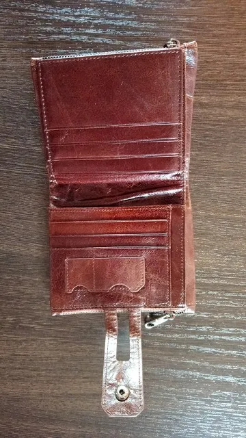 Кошелек вместительный, но нет отделения под замком для купюр, ну и конечно это не кожа, а, как сейчас принято называть, экокожа, но очень мягкая, приятная на ощупь, в целом, кошелек очень хороший, полное соответствие цены и качества. Со всеми скидками обошёлся в 9 долларов.