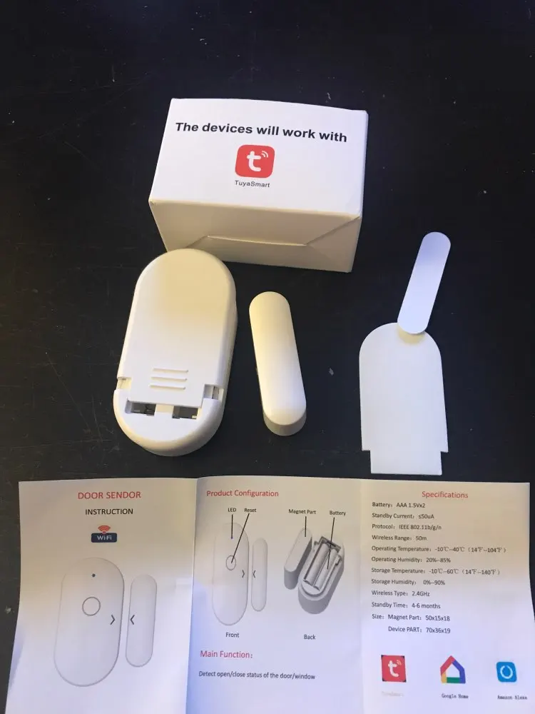 Они легко подключаются через Wi-Fi к приложению smart life. Они посылают сообщение при открытии и закрытии двери. Они работают с 2 батареями типа AAA, и если вы удалите батареи, это займет 1 день, чтобы обнаружить их в приложении. Они маленькие и простые, на данный момент они работают довольно хорошо, отправка информации занимает несколько секунд.