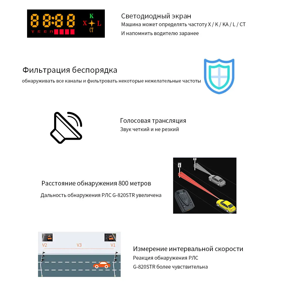 Радар-детекторы Karadar G820 Led 2 в 1 для России с GPS Автомобильный антирадар Полиция Скорость Сигнализация Бесплатные обновления данных Автодетектор сигнализация на авто Безопасное вождение