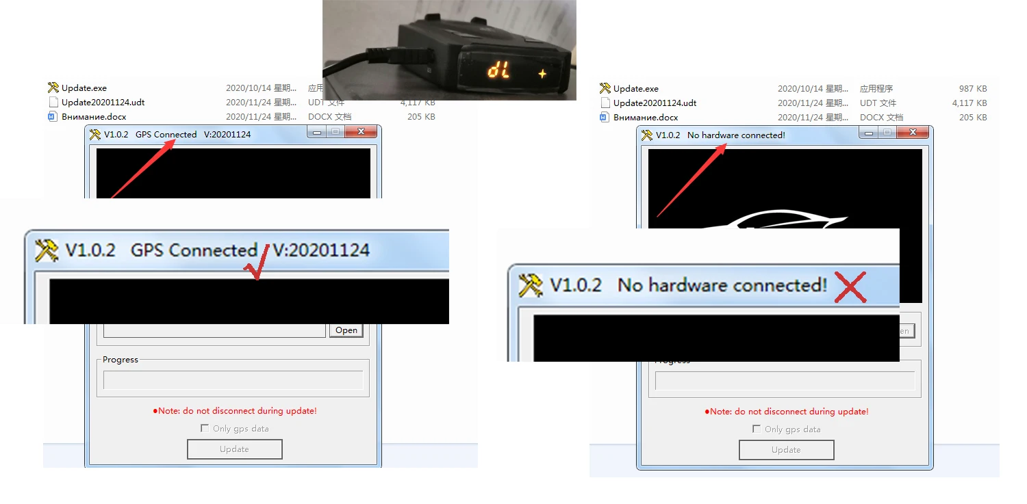 Доставка быстрая, упаковано все отлично. Только есть проблема с обновлением - провод в комплекте оказался не рабочим, к счастью у меня есть запасной. При подключении к компьютеру по usb на дисплее радара написано «d L +», компьютер его опознает как устройство ввода, а не носитель. Может кто сталкивался с подобной проблемой? Как решить её? По обнаружению камер ещё не проверял