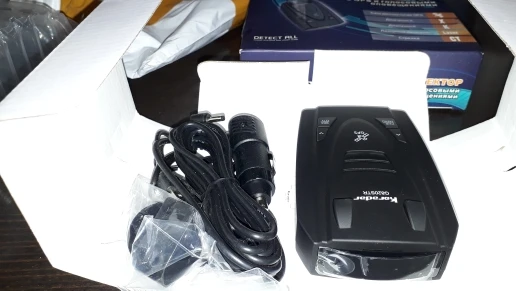Отличный антирадар, коробка фирменная, инструкция на русском. Говорит тоже по русски. Пришёл очень быстро.
