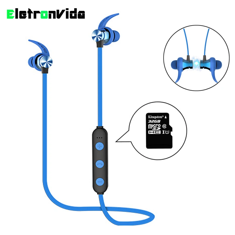 Металлические магнитные наушники Bluetooth 4,2, гарнитура, Спортивная Беспроводная Bluetooth-гарнитура с микрофоном, слотом для карты памяти TF