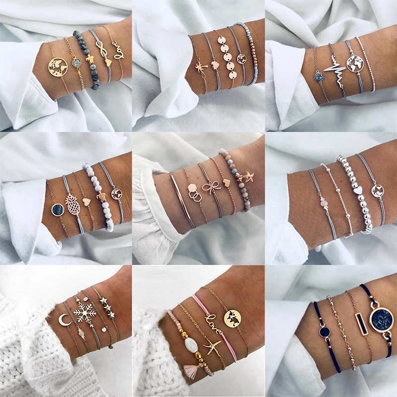 Женский многослойный браслет docona, черепаховый браслет в богемном стиле с картой, бусинами в форме сердца