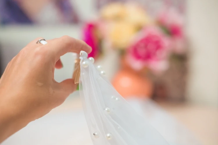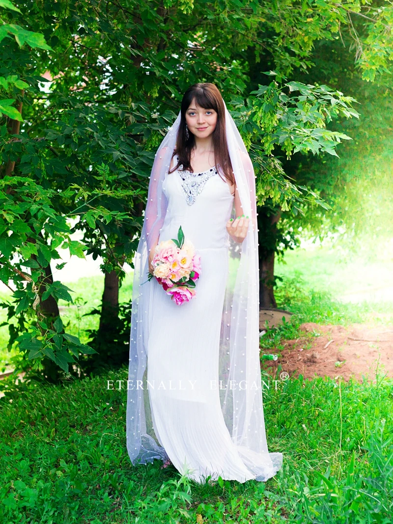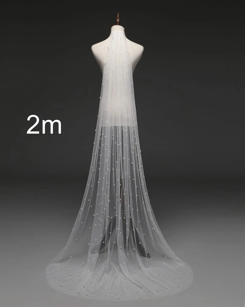 Фата свадебная с гребнем, однослойная, Королевский жемчуг, перламутровая вуаль, Белыйцвет слоновой кости