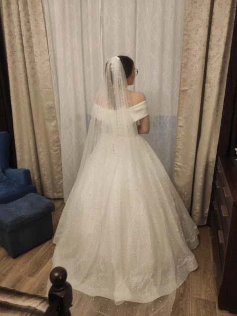 Фата идеальная, брала цвет айвори, поскольку боялась, что белая будет слишком яркой и выглядеть как сетка москитная или марля))))), не пожалела, такой цвет подойдет как к белоснежному платью, так и к платью цвета айвори. Фото вышлю после свадьбы, пока что просто прикреплю фото фаты в упаковке. Изначально брала её только для фото, но качество такое, что в ней можно на церемонию! Неожиданно за такую цену!