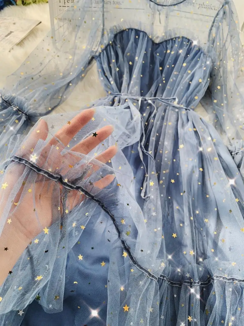 Великолепное качество. Чтобы вы понимали, платье находится на уровне Love Republic. Прекрасная, умеренно мягкая ткань, бархатные роскошные ленточки, крой, швы - все выглядит очень дорого. Звездочки качественные, закреплены хорошо. Клея не видно совсем. Доставка до Петербурга месяц, что очень недолго. Упаковка надежная, запаха нет. Рекомендую.