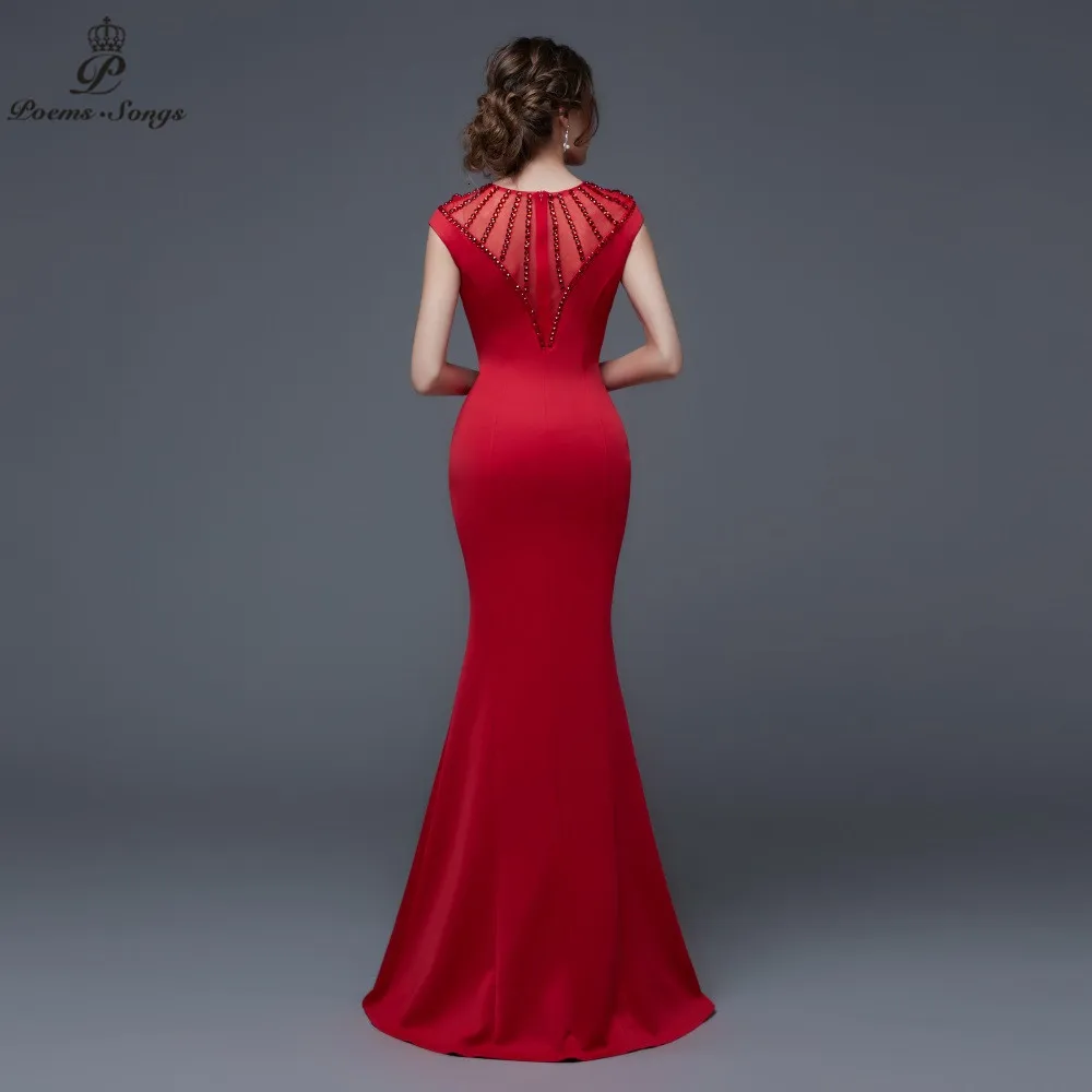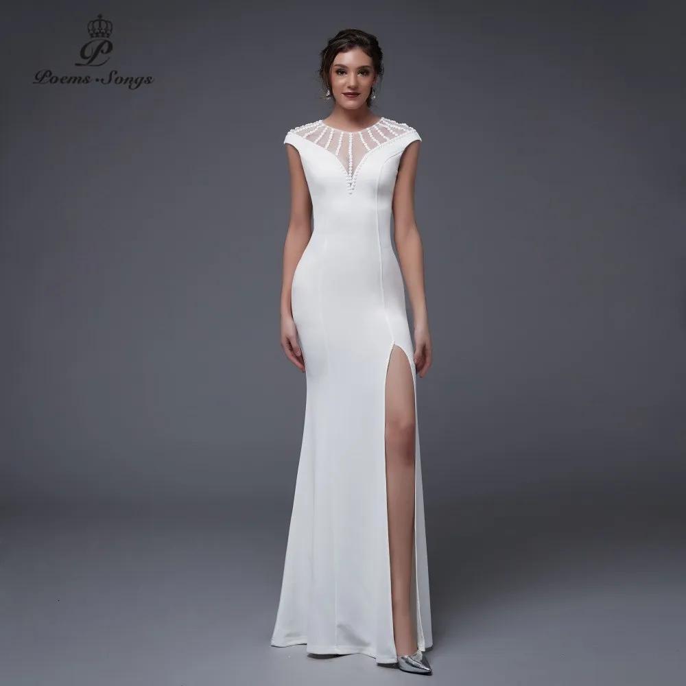 Платье вечернее с открытой спиной и круглым вырезом, с разрезом сбоку