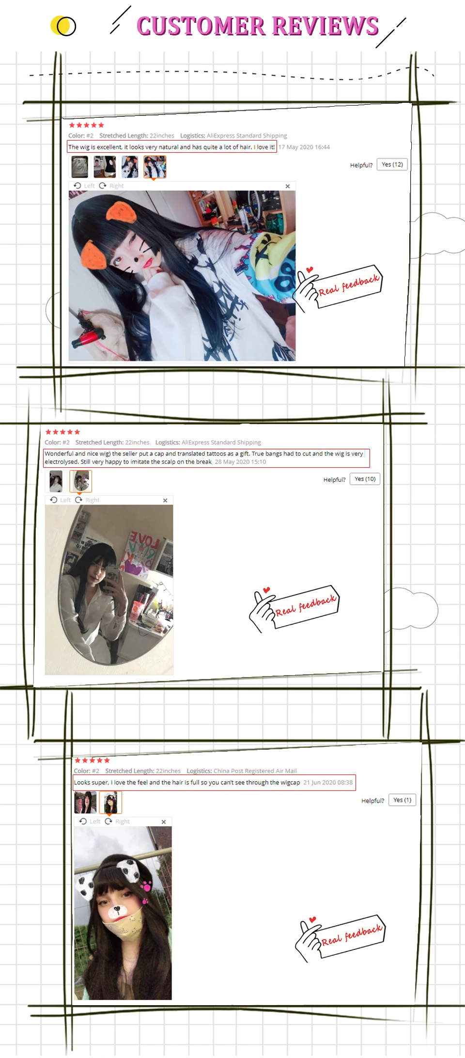 Супер мило! Выглядит точно так же, как на фотографиях! Крышка, к которой прикреплены волосы, черного цвета, поэтому, даже если были какие-либо лысые части, это незаметно. Он очень мягкий и не имеет блеска, который вы видите на большинстве синтетических париков. Поскольку он довольно толстый, короткие части спереди могут быть немного раздражающими, но это честно говоря, не слишком плохо. Челка не слишком длинная, а парик в целом выглядит очень реалистично. Прошло гораздо раньше, чем ожидалось, около двух недель. В комплект входит шапочка для парика, и я отправил фотографии в своем Instagram @ k1ttykor3 _ я очень доволен этим париком <33