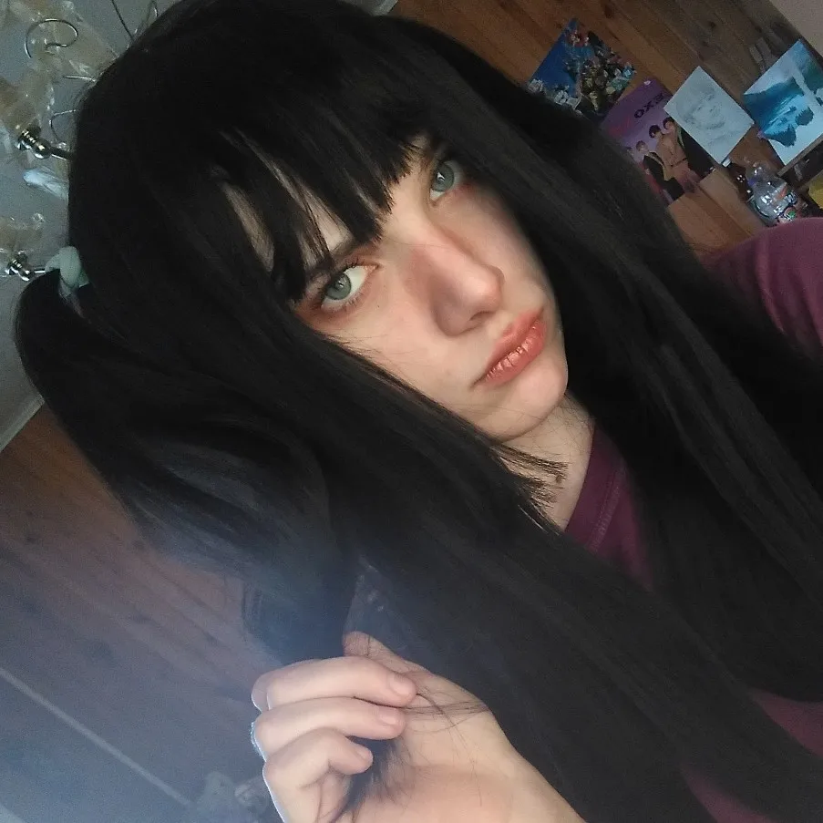 Парик очень хорошего качества, не имеет дешёвого блеска, чёлка была немного длинная, но я её обрезала и она просто супер. Густой, волосы не сыпятся. Брала на косплей Акаме, инст @kiilliismss