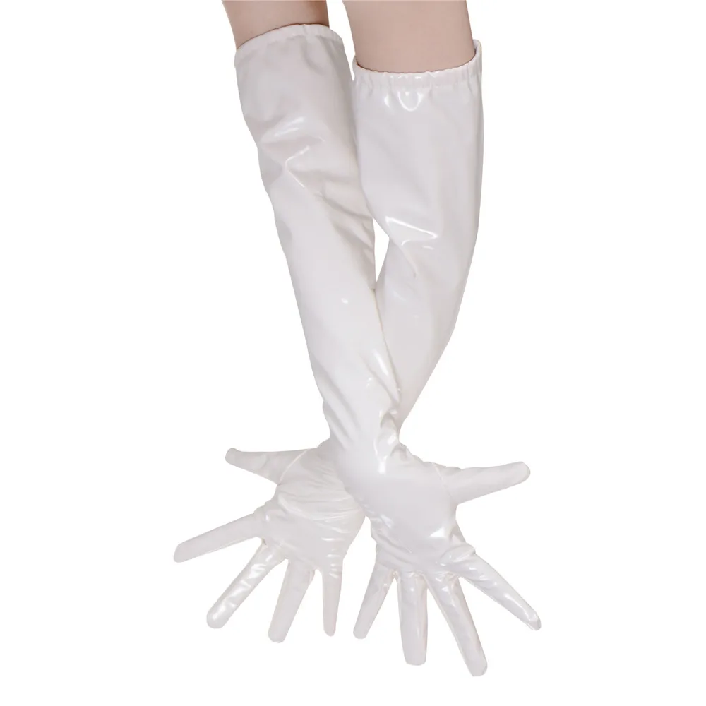 Женские перчатки из искусственной кожи белого цвета, Длинные блестящие перчатки Emma Grace Frost, Аксессуары для платья супергероев