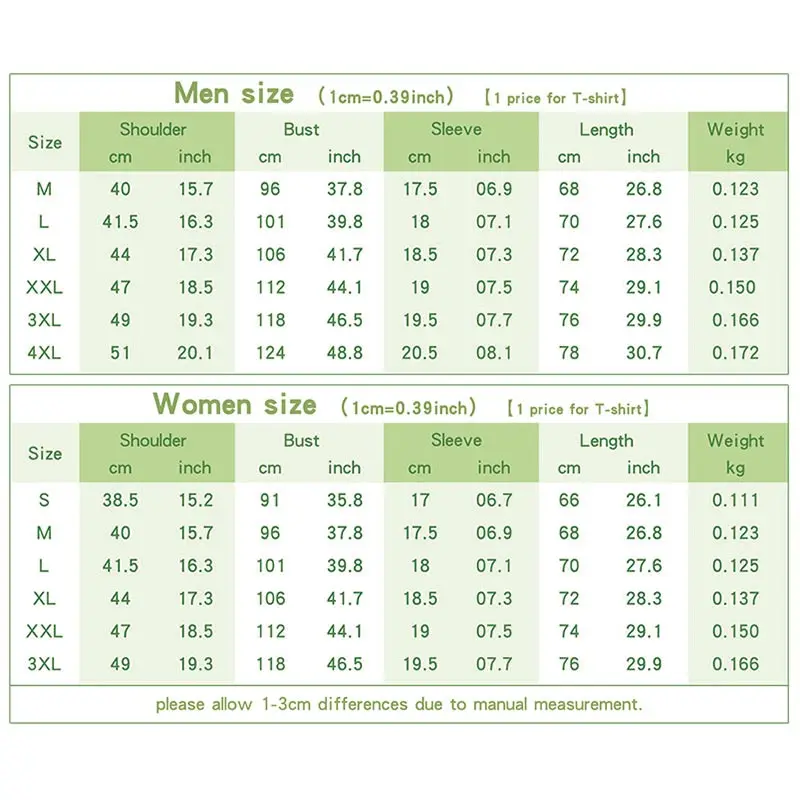 В: Как разместить заказы на Комплект футболок (для мужчин и женщин)? О: например, размер S для женщин, размер M для мужчин, Нажмите на Women S => Добавить в корзину => Продолжить покупку => Добавить мужчин M В корзину => Перейти в корзину => Вы можете оформить заказ => Вы можете заплатить за них вместе (Если у вас есть какие-либо проблемы, пожалуйста, немедленно свяжитесь со мной)