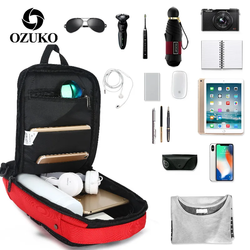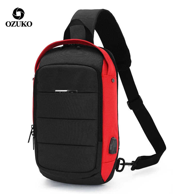 OZUKO многофункциональная модная водонепроницаемая сумка через плечо, дорожная Мужская нагрудная сумка, внешний USB интерфейс, сумка на одно плечо, нагрудная сумка