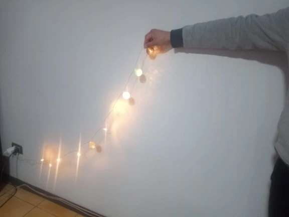 Огни такие же, как на фотографии. Используйте 3 батарейки AA. Свет и шарики разбиваются. Мы должны собрать гирлянду. Доставка в Чили занимает около 1 месяца. 10/10