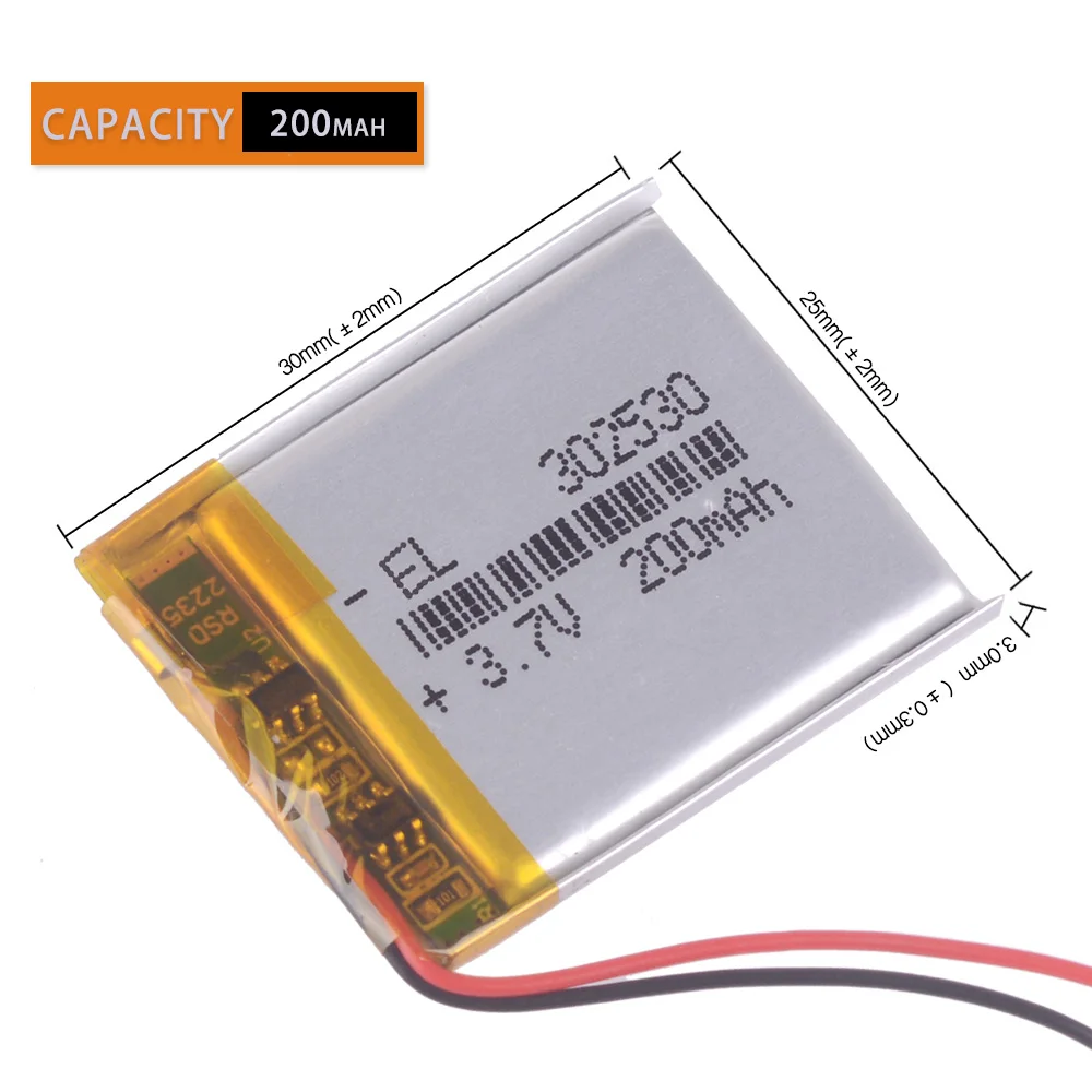302530 3,7 V 200mah литий-полимерный аккумулятор с защитной платой для MP3 цифровых продуктов Автомобильный видеорегистратор sho-Me A7 плеер