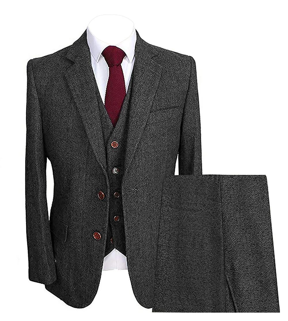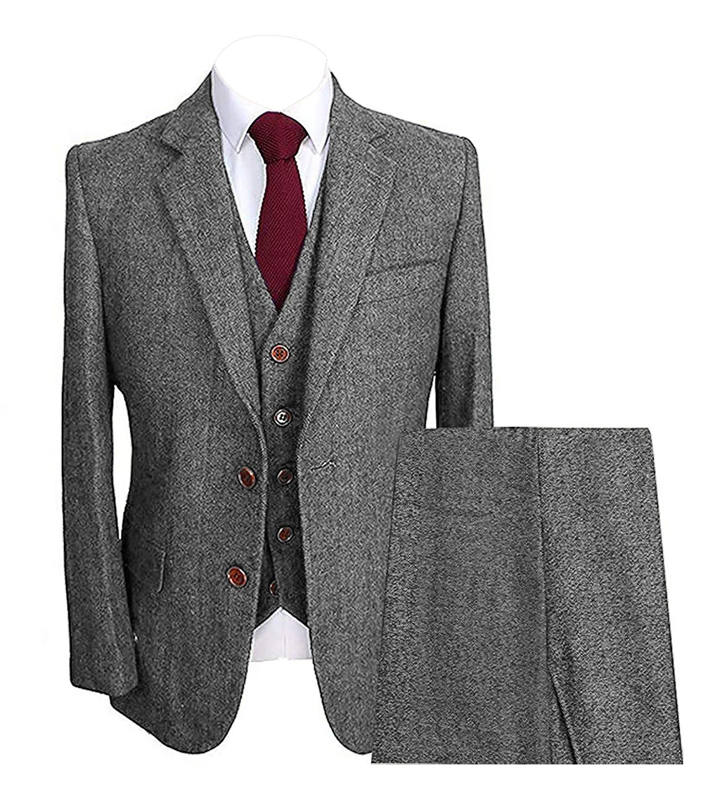 Мужской шерстяной твидовый костюм из 3 предметов, официальный смокинг с лацканами и узором в елочку, обычный размер, Зимний свадебный костюм жениха (Блейзер + жилет + брюки)