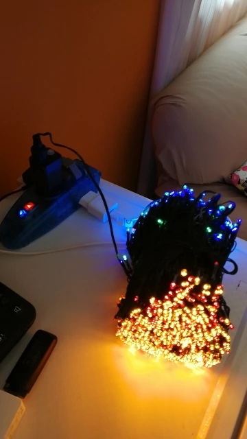 Супербыстрая доставка - всего 12 дней!!! Гирлянда внушает доверие и уважение. Для меня важны два её основных достоинства: прочность и возможность удалённого включения. Гирлянда живёт на улице, ёлка уже метров десять, и прошлая гирлянда (светодиодная струна из трёх тонких и мягких медных проволочек) была разорвана ветром в нескольких местах. Поначалу находил обрывы и паял, а потом буря её прикончила. Эта гирлянда выглядит прочнее. Включается гирлянда из дома и для меня было важно чтобы она включалась в нужном мне режиме, и, как оказалось такая возможность есть: включаешь, устанавливаешь режим и выключаешь. При следующем включении будет работать тот же режим. Светится в темноте ярко и красиво. С чистой совестью рекомендую и товар и продавца.