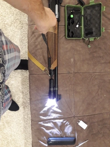 Все супер, фонарик светит отлично, для охоты пойдет, корпус прочный, крепление на ствол точно не для оружия (на фото фонарик прикреплен на родное крепление от ружья). Ждал до Набережных Челнов примерно 3 недели. Продавец отвечает на вопросы довольно быстро и четко, приятно удивлен) В общем советую!
