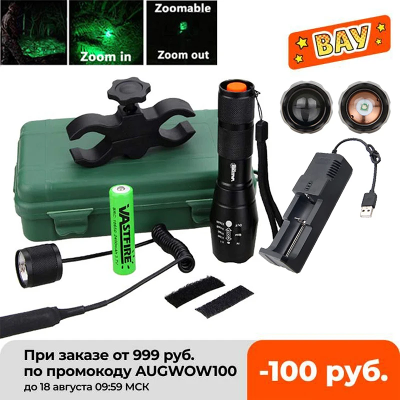 Q5 T6, тактическая настраиваемая охотничья вспышка, 5000 лм, зеленыйкрасныйбелый светодиодный светильник для оружия, крепление для винтовки, 18650, переключатель давления, зарядное устройство