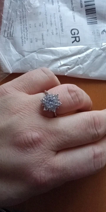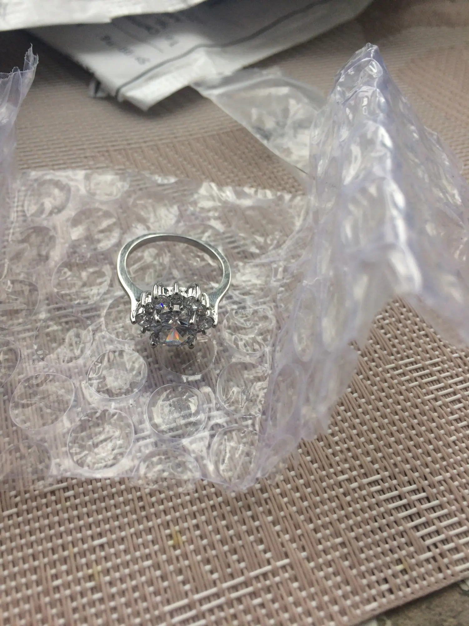 Доставка в Украину 1 месяц. Упаковано надежно. Красивое кольцо. Все камни на месте. Размер подходит на наш 16. Телефон не передает красоту блеска камней. Стоит дёшево, но выглядит впечатляюще. С продавцом не было необходимости общаться, но ему спасибо за быструю отправку