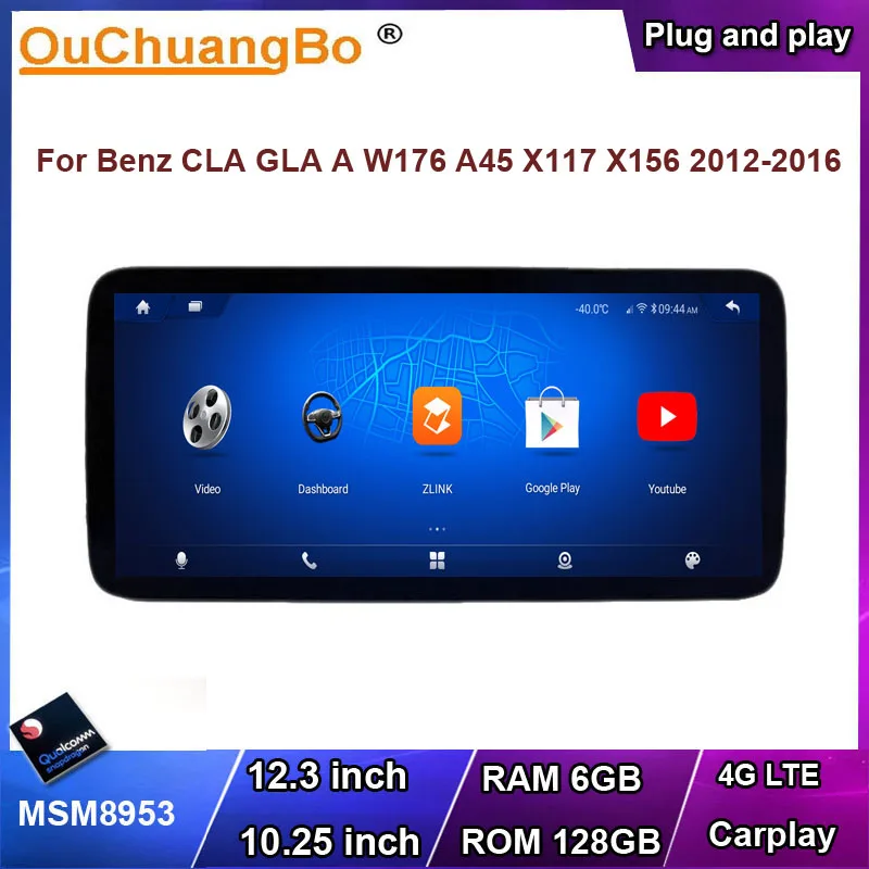 Ouchuangbo Автомагнитола для Benz CLA GLA A klase A45 W176 X117 X156 2012-2016 с Carplay DSP 8 ядер 64 ГБ Android 11 OS