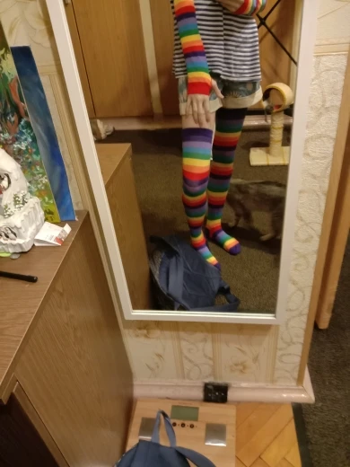 Красочные радужные чулки YiZYiF, полосатые гольфы до бедра, теплые перчатки для рук, костюм на Хэллоуин вечерние, косплей, праздничный подарок