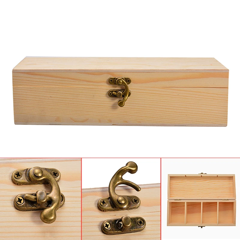 4 отсека Домашний Деревянный ящик для хранения чай украшения часы Контейнер чехол с замком декоративный Органайзер ручной работы