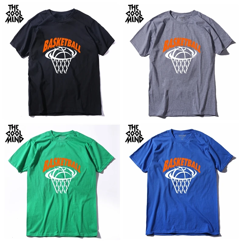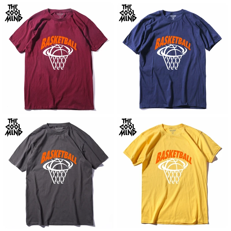 COOLMIND 100% хлопок Принт баскетбольного мяча Мужская футболка Повседневная летняя свободная Мужская футболка крутая Мужская футболка мужские футболки