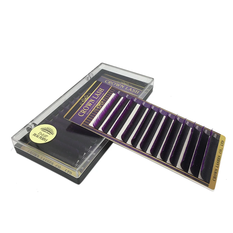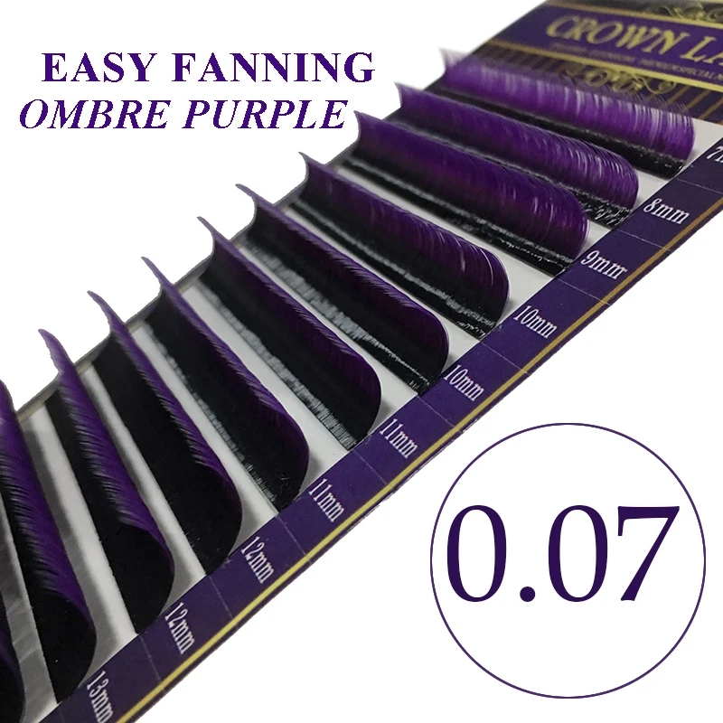 Двухцветные черные и фиолетовые ресницы CrownLASH 0,07