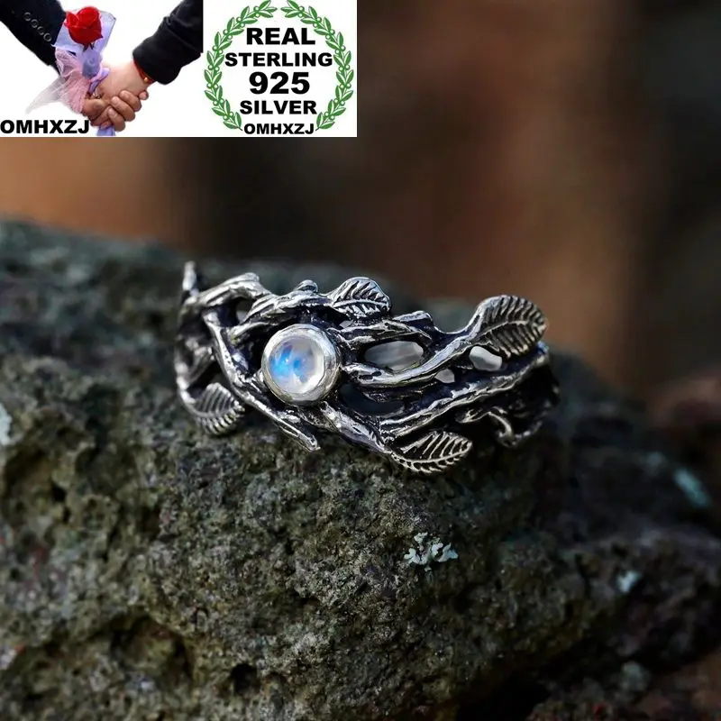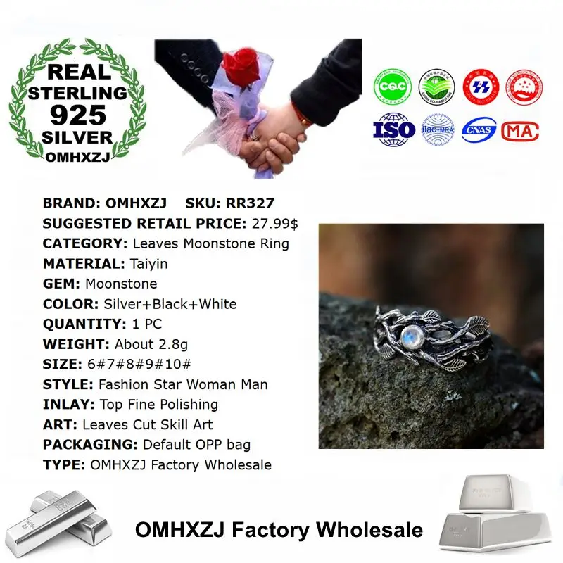 OMHXZJ оптовая продажа, европейские модные женские и мужские вечерние свадебные подарки, серебряное кольцо с белыми листьями из лунного камня Taiyin RR327