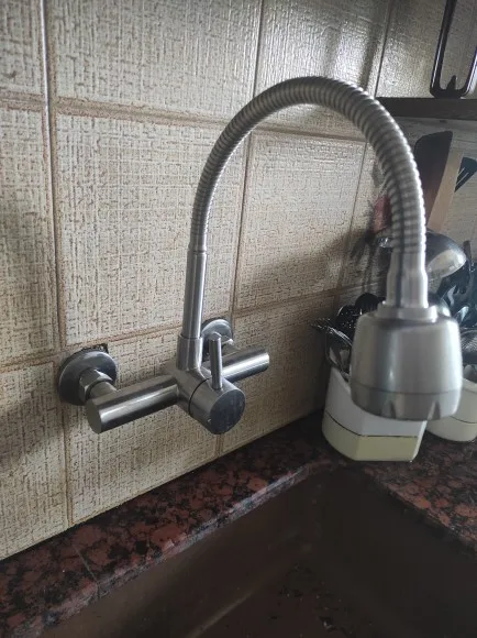 Настенный кухонный смеситель из нержавеющей стали, смесители для кухни, поворот на 360 градусов, гибкий шланг с двумя отверстиями
