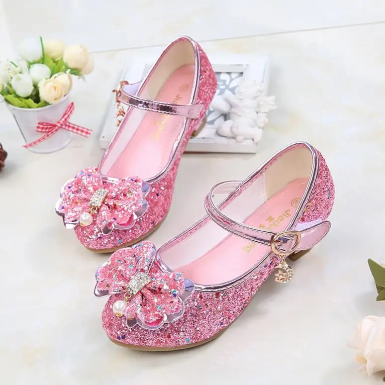 Детская обувь для девочек, сандалии на высоком каблуке для принцесс, модная детская обувь из блестящей кожи, модная обувь для девочек для вечеринки, свадьбы, танцев