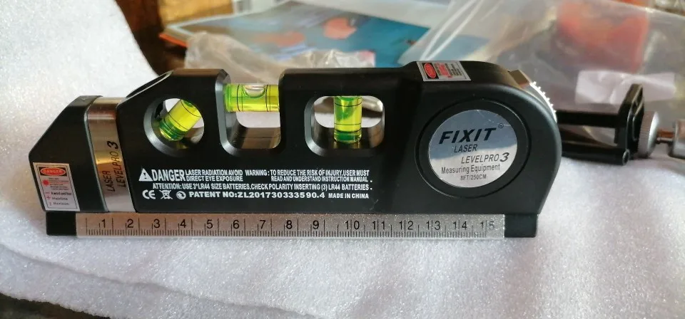 Абсолютно бесполезный и далеко не точный девайс. Батареек в комплекте нет. Слева тодщина луча 3мм., справа - 7мм. Штатив пластиковый, сломается быстро. Капелярный уровень не корректный, показыват неправельно. Деньги в трубу!