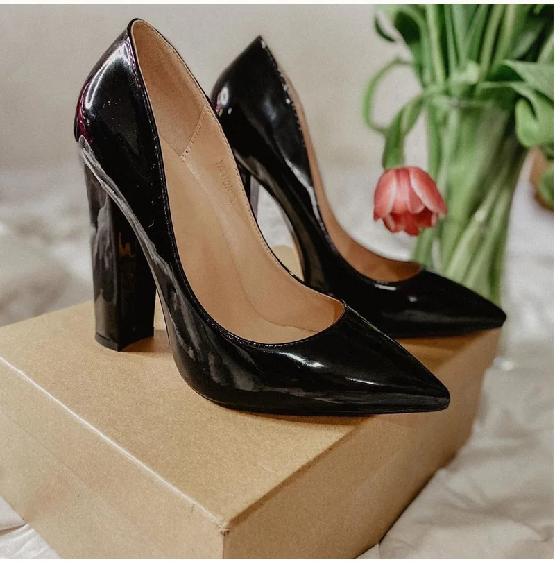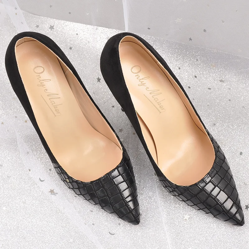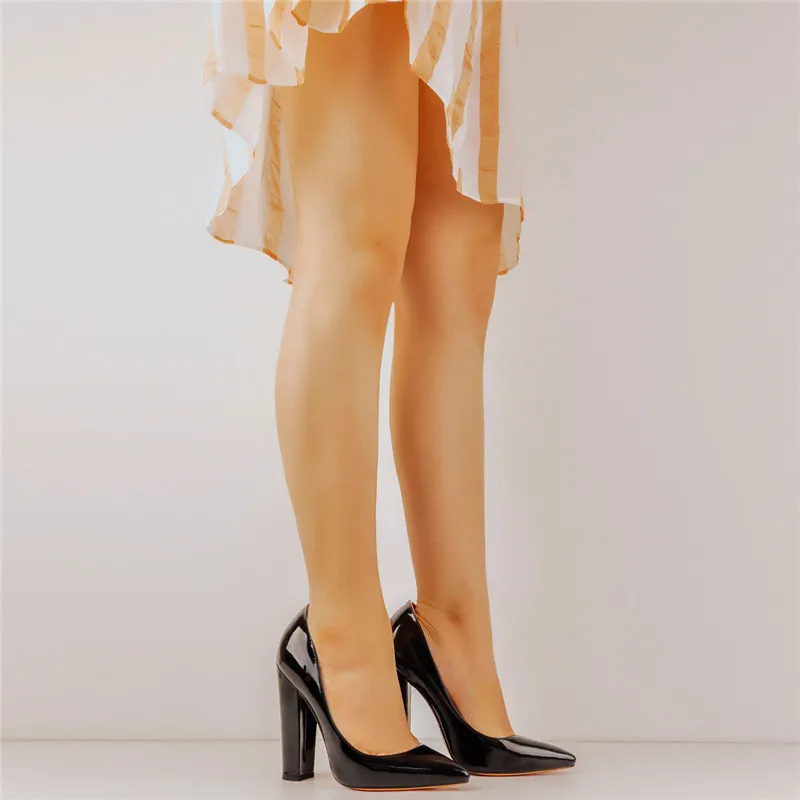 Женские классические туфли-лодочки Onlymaker с острым носком, высотой 12 см, без застежек, на толстом каблуке, свадебное офисное платье, большие размеры, женские туфли-лодочки на массивном каблуке
