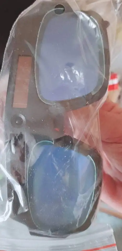 Очки получил. В работе пока не проверял. Упакованы в жесткую картонную коробку. А вот коробка пустая и поэтому очки там всю дорогу болтались. И поэтому стекла немного поцарапались. В комплект входят запасные стекла. Стекла по моему из оргстекла. Хочу обратиться к продавцам - ложите поролон внутрь коробки что бы очки не болтались внутри. Спасибо за внимание!
