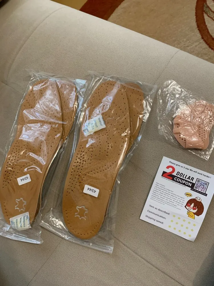 Магазин отправил товар очень скоро, и получил его около двух недель в США. Размер стельки меньше, чем у других. Поэтому, как только вы положите его в свою обувь, он не будет полностью подходить. Еще одним недостатком является пластиковая Опора с кнопкой типа «скользкий», по сравнению с другими брендами на картинке. Он может не плотно прилегать к вашей обуви.