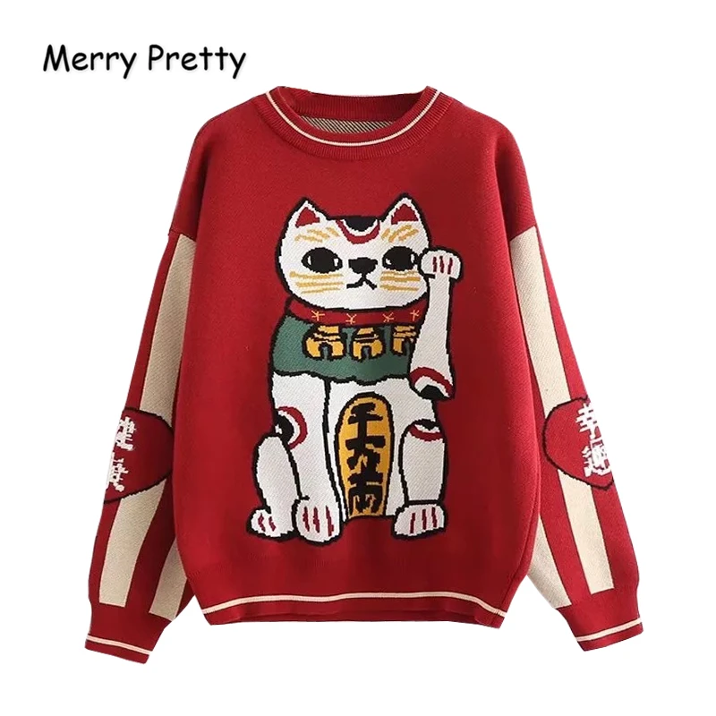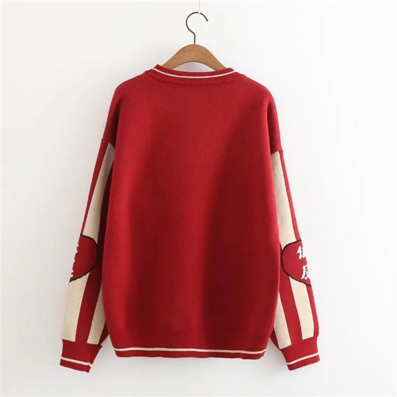 Женский трикотажный свитер с длинным рукавом, круглым вырезом и вышивкой