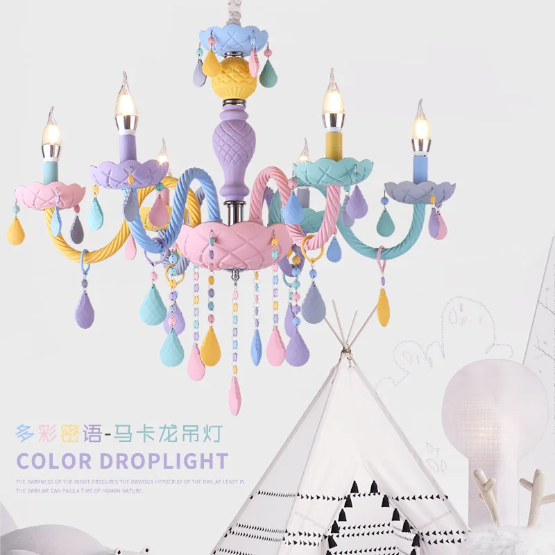 Милая цветная люстра в виде свечи Macaron, лампа для ресторана, лампа для спальни, детская комната, девочка, принцесса, декоративные лампы для дома.