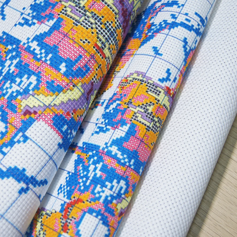Цвет на принтованной ткани отличается от фактического. Так как на рисунке много похожих цветов, чтобы лучше отличить цвета,Мы выбираем большие цветовые блоки и символы для замены похожих цветов. После завершения работы вам нужно только положить холст в воду в течение 1-2 часов,Напечатанный рисунок на холсте исчезнет, и, наконец, получим сшитую крестиком работу с таким же реальным рисунком.