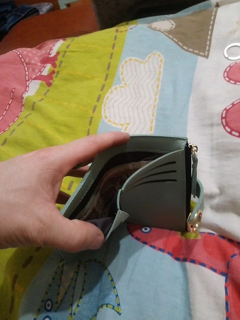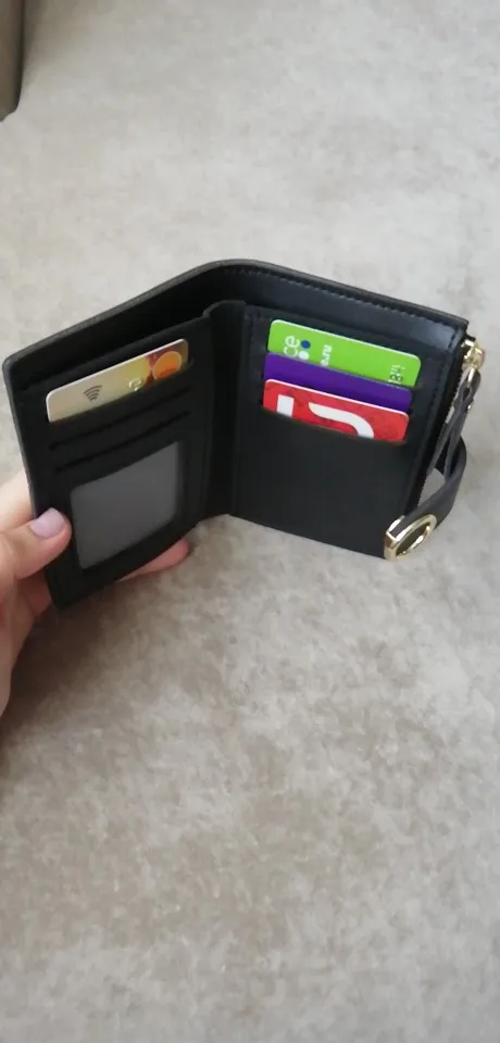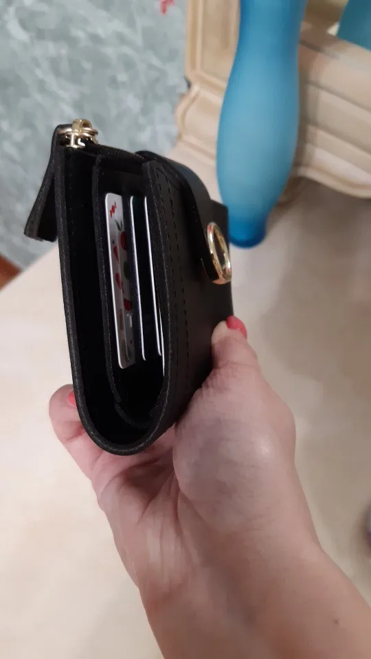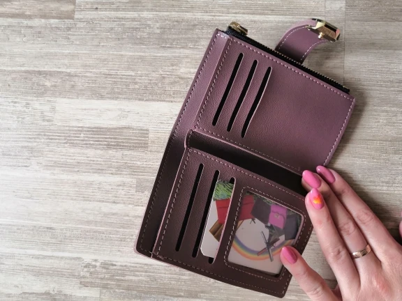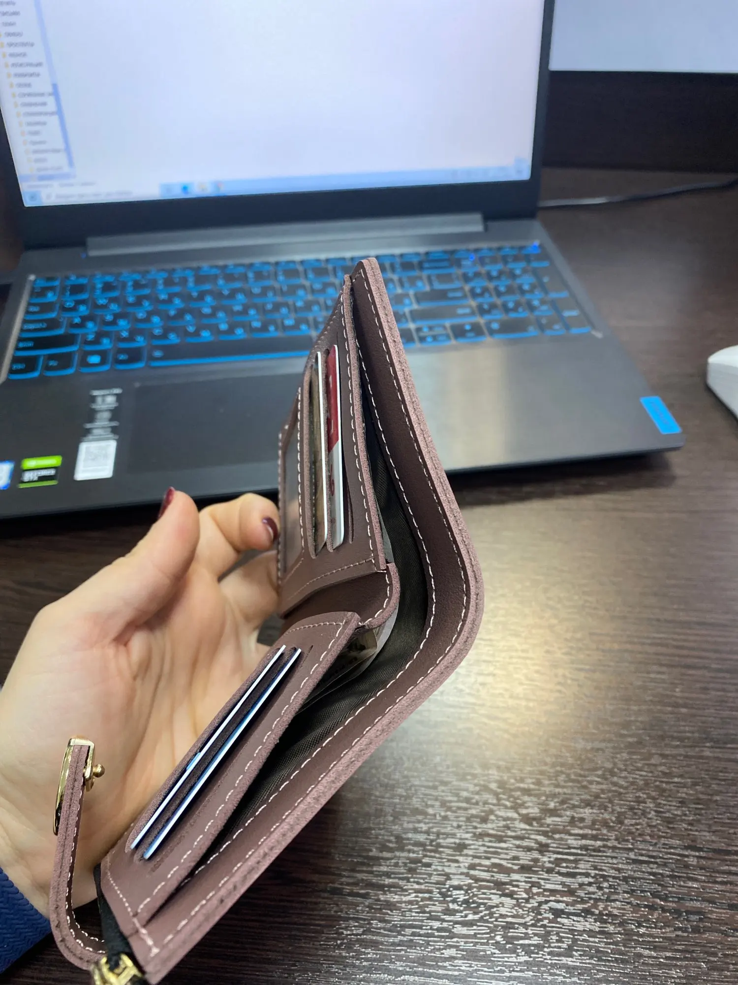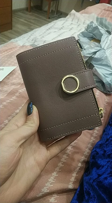 Заказ доставили быстро, кошелёк понравился, компактный, заказывала для маленькой сумки. Есть небольшой запах, но выветрится быстро. Спасибо продавцу.