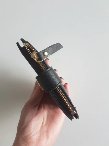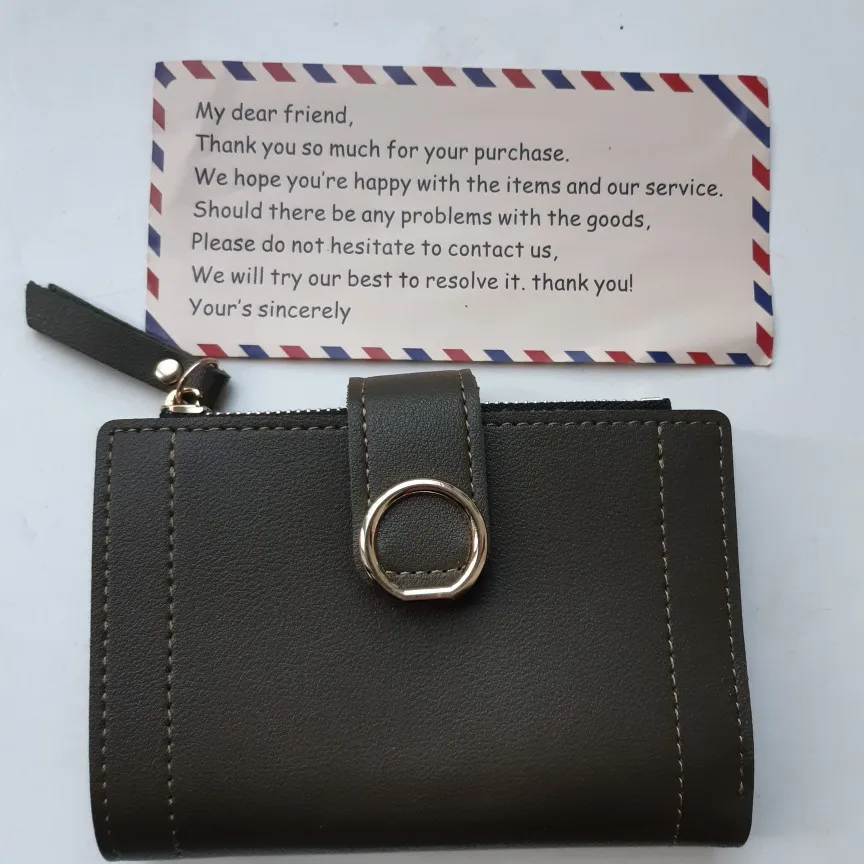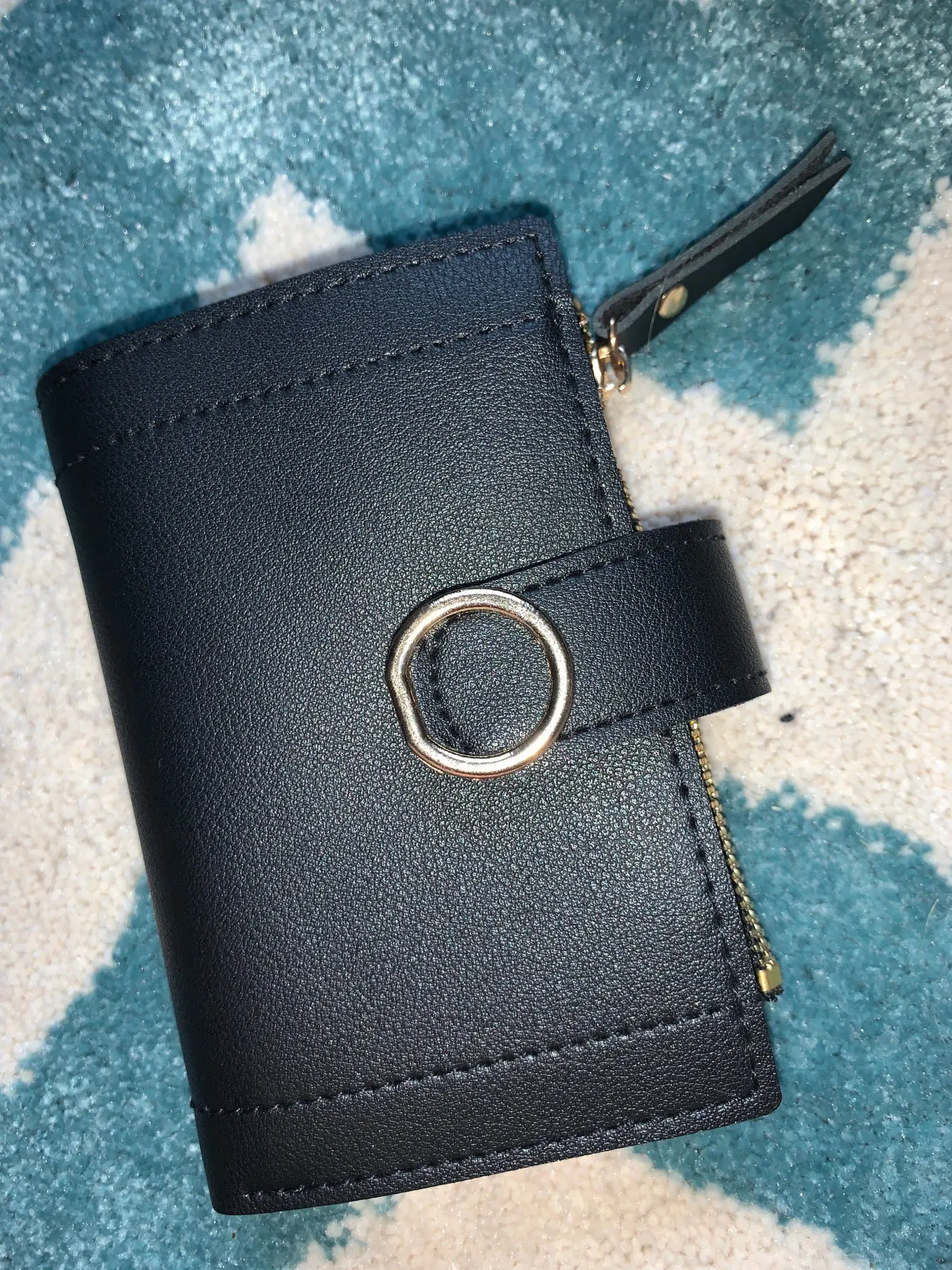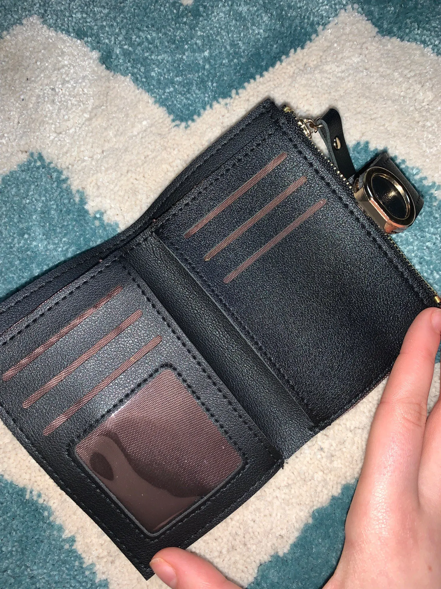 Заказ доставили быстро, кошелёк понравился, компактный, заказывала для маленькой сумки. Есть небольшой запах, но выветрится быстро. Спасибо продавцу.