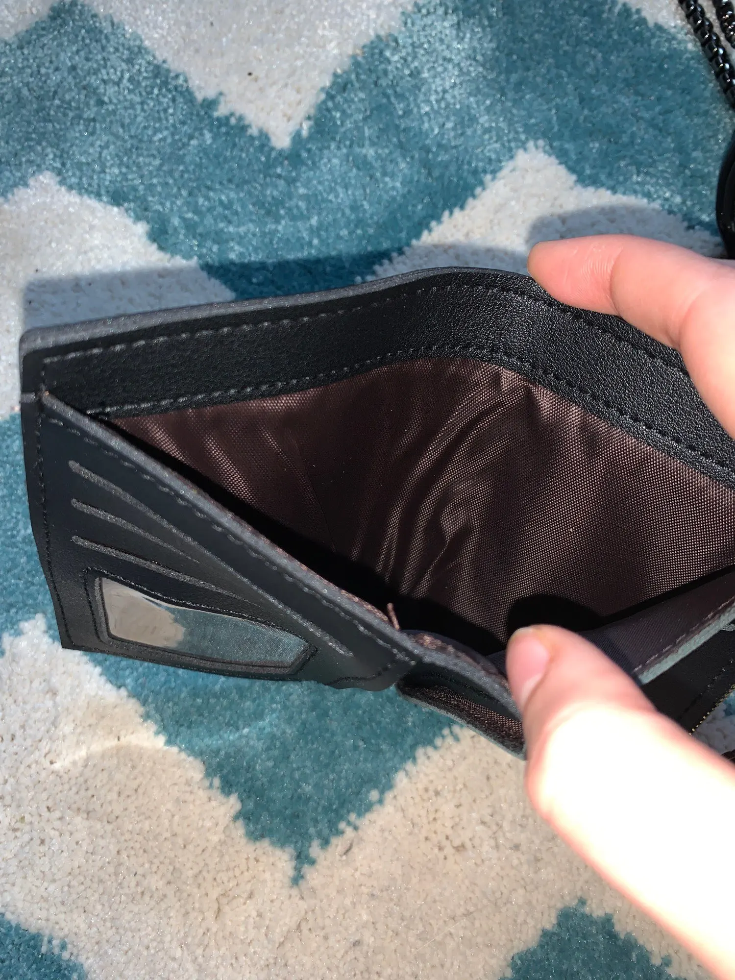 Кошелёк супер за свою стоимость! Выглядит не дёшево, хожу уже 3 месяца с ним, не потрескался и не потерял формы. Российские бумажки все влезают, отделение для мелочи есть, карты вообще все влезли, и защёлка крутая (не зависит от наполнения-все равно застегнется). Крутой
