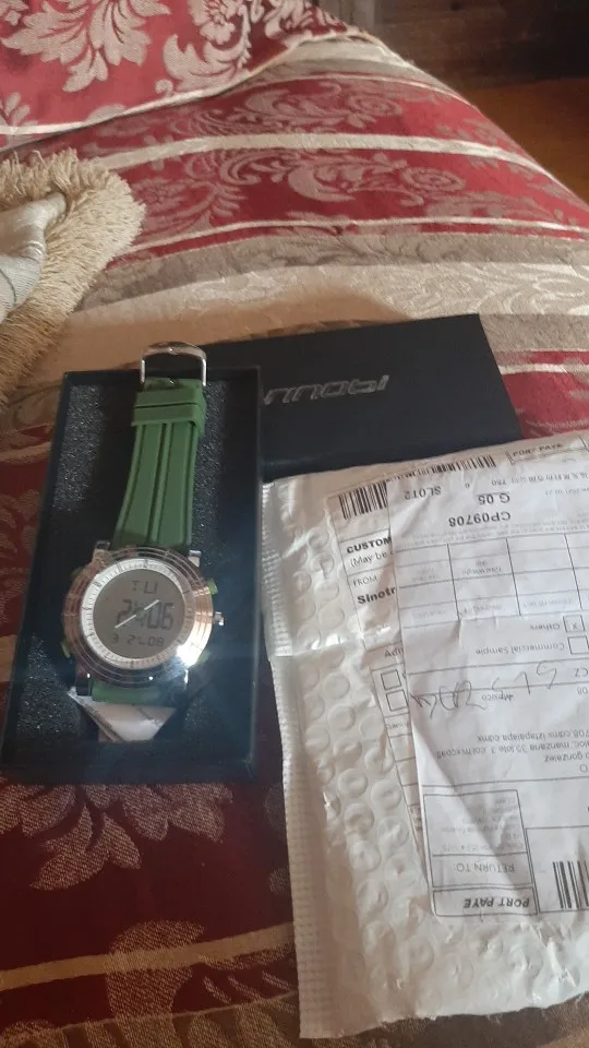 Доставка очень быстрая до двери, предварительно предупредили. Есть недочет, пришли вместо черных серебристые. Открвл спор, компенсировали часть денег, и опять очень быстро. Продавец молодец! Сами часы масивные, и на руке масивные, ремешок толстый силикон, без запаха, увесистые. На любителя. Идут точно, подсветка работает, будильник звенит. Суля по сказанному, вывод- доволен