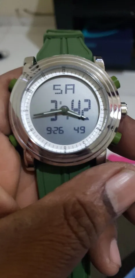 Покупкой очень доволен, часы понравились. Приятно сидят на руке, тяжёленькие. Все сделано качественно и с заботой о покупателе. В красивой коробочке с бейджиком. , электронное местное. На работе даже в тёмное время суток электронные цифры на светлом фоне читаются. Кстати, не забудьте фиксатор из под центральной головки снять. В общем часы - как говорится "то что доктор прописал!"