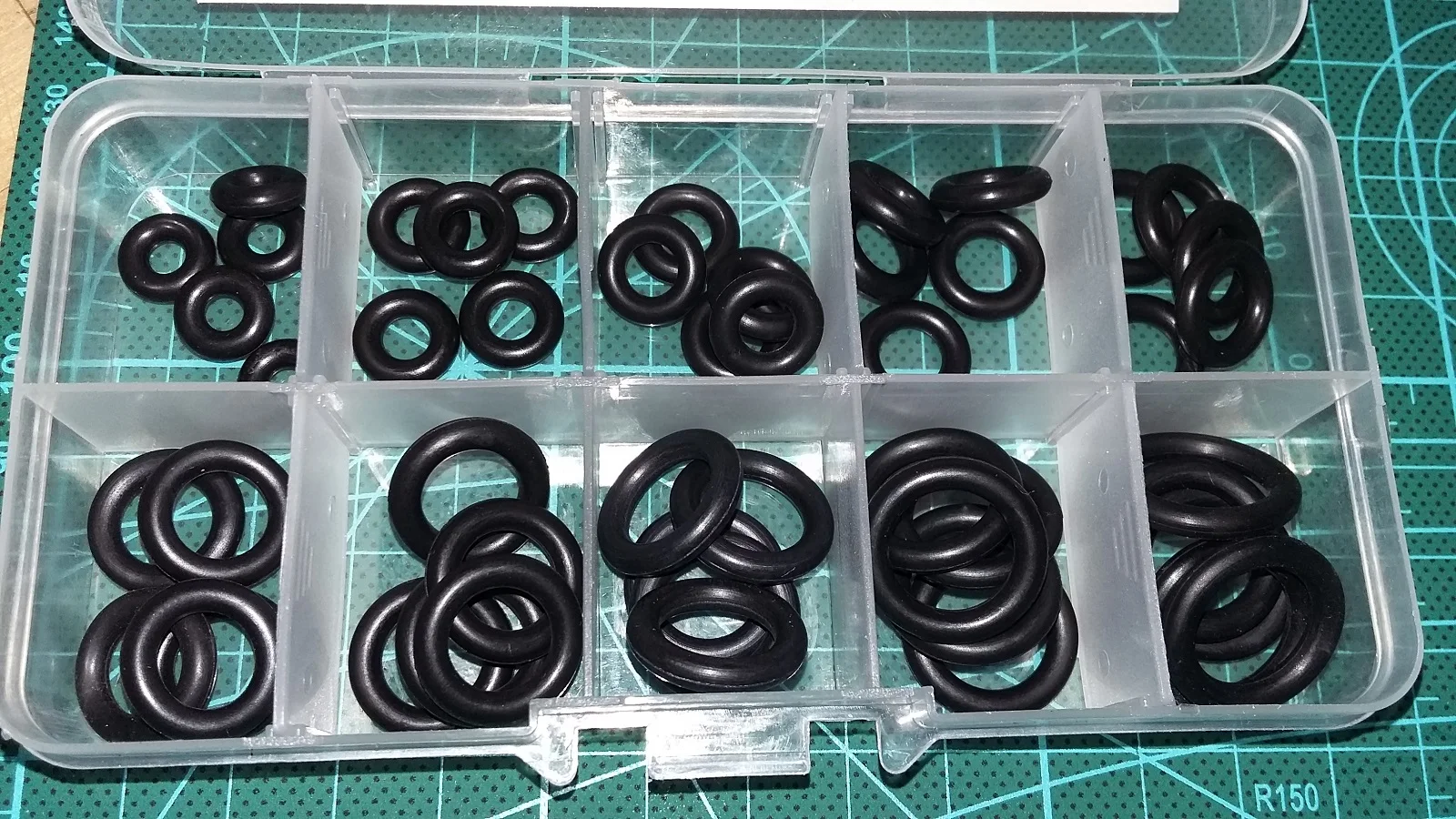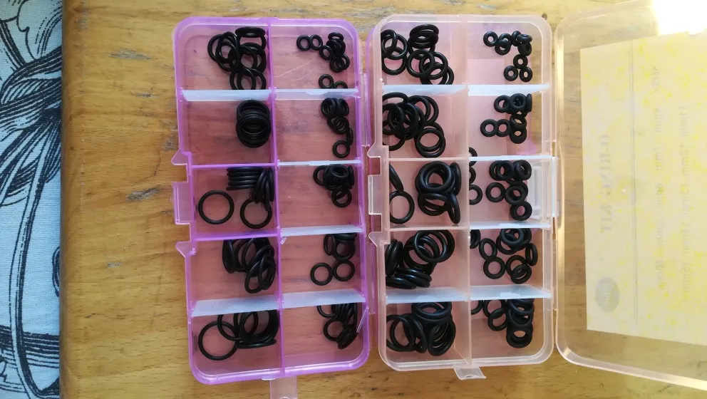 Ring (CS) = 3мм. Очень быстрая доставка (до Подмосковья) - оплатил 08 января 2021, а получил уже 21 января ! Коробочки удобные для сортировки и хранения. Уплотнительные кольца на вид отличного качества, количество совпадает. Материал NBR- синтетический полимер бутадиен-нитрильный каучук. Применяю в качестве сантехнических уплотнений. Выдерживает температуры -30°С... +100°С (критическая +130°С.). Кольца эластичные и тянутся не менее чем в два раза (см. фото). При заказе указаны внешние размеры колец (OD), поэтому учитывайте внутренний диаметр (ID) с учетом толщины (CS). У самого большого кольца в этом наборе размеры такие: 19х13х3мм. У этих колец указана толщина 3мм, но фактическая 3,1мм. Отличный набор и продавец!