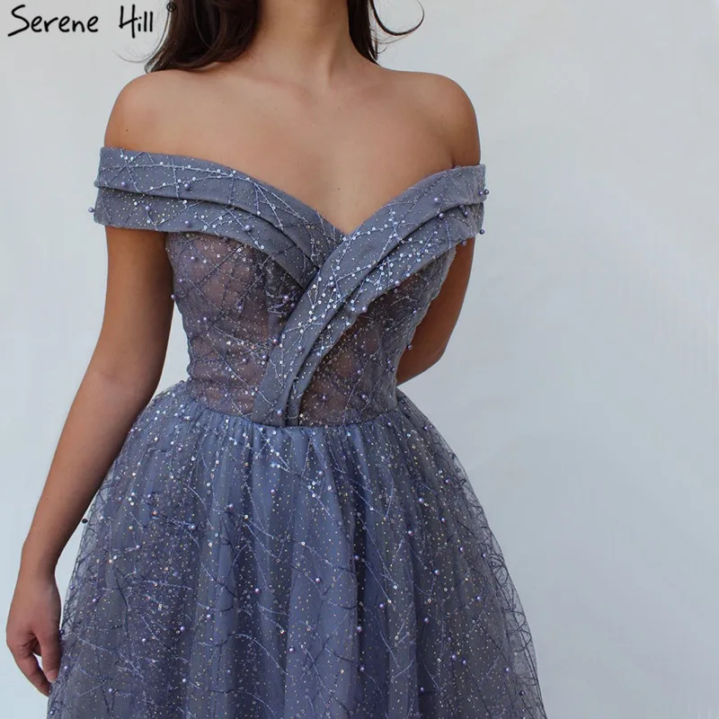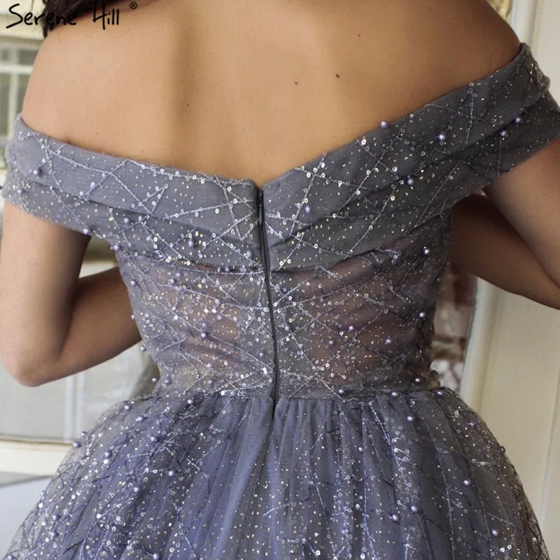 Серое роскошное вечернее платье без рукавов с жемчужинами и блестками, длинное 2021 с открытыми плечами, пляжные Сексуальные вечерние платья LA60786