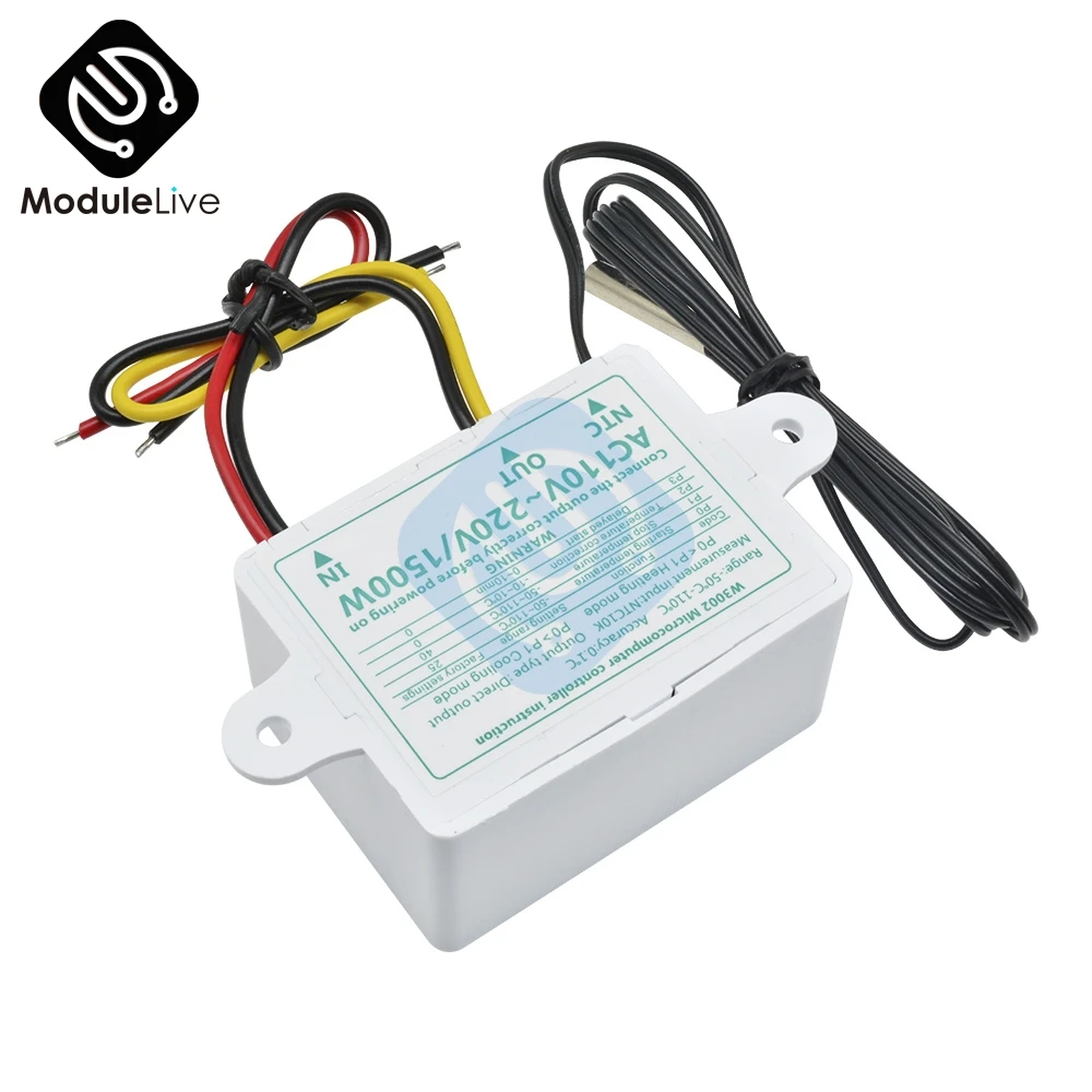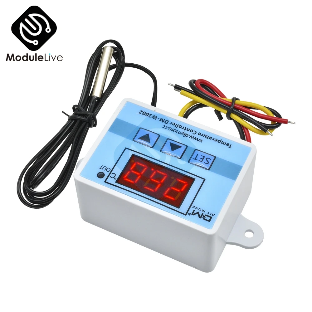 W3002 12 В 24 в 110 В 220 В светодиодный цифровой контроллер температуры термос терморегулятор датчик измеритель нагрева охлаждения + 1 м 10k 3950 провода