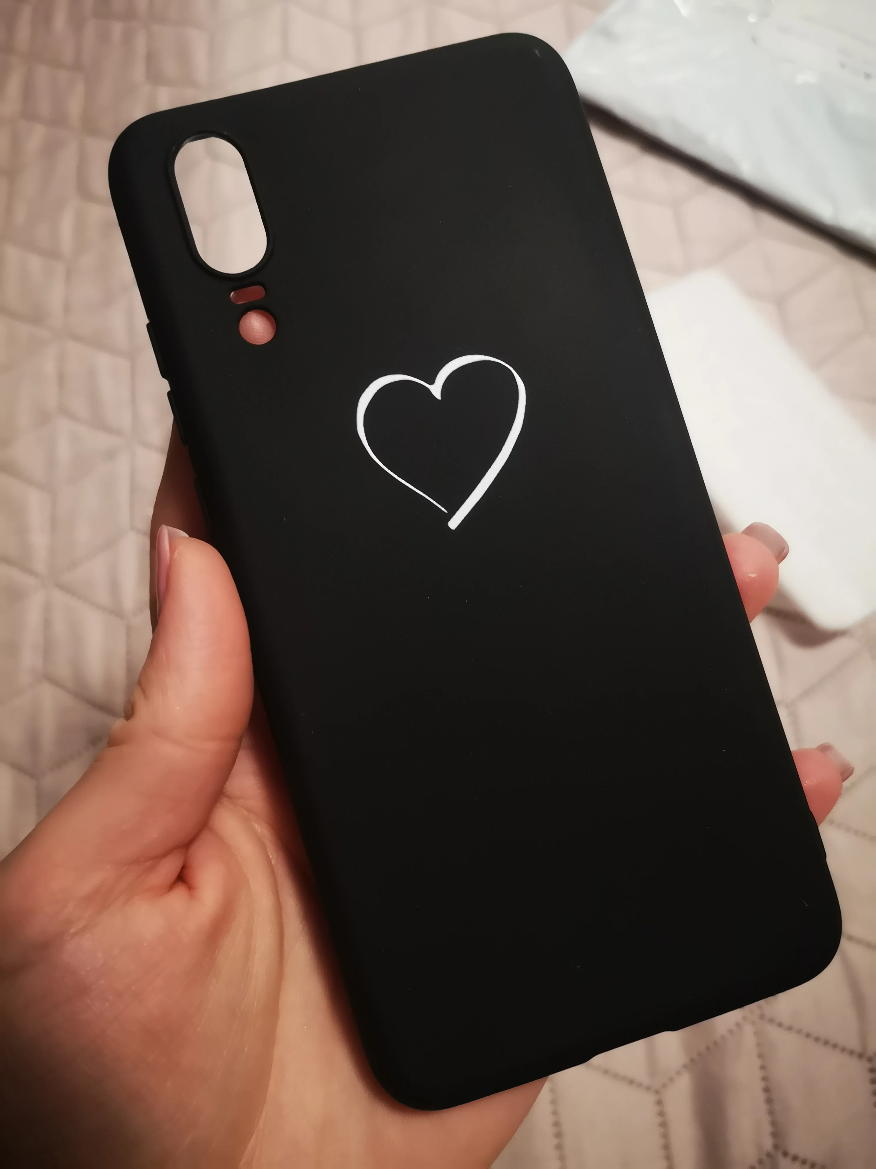 супер. чехол матовый. заказывала на п20 черный с сердцем. очень понравился!!!! :)