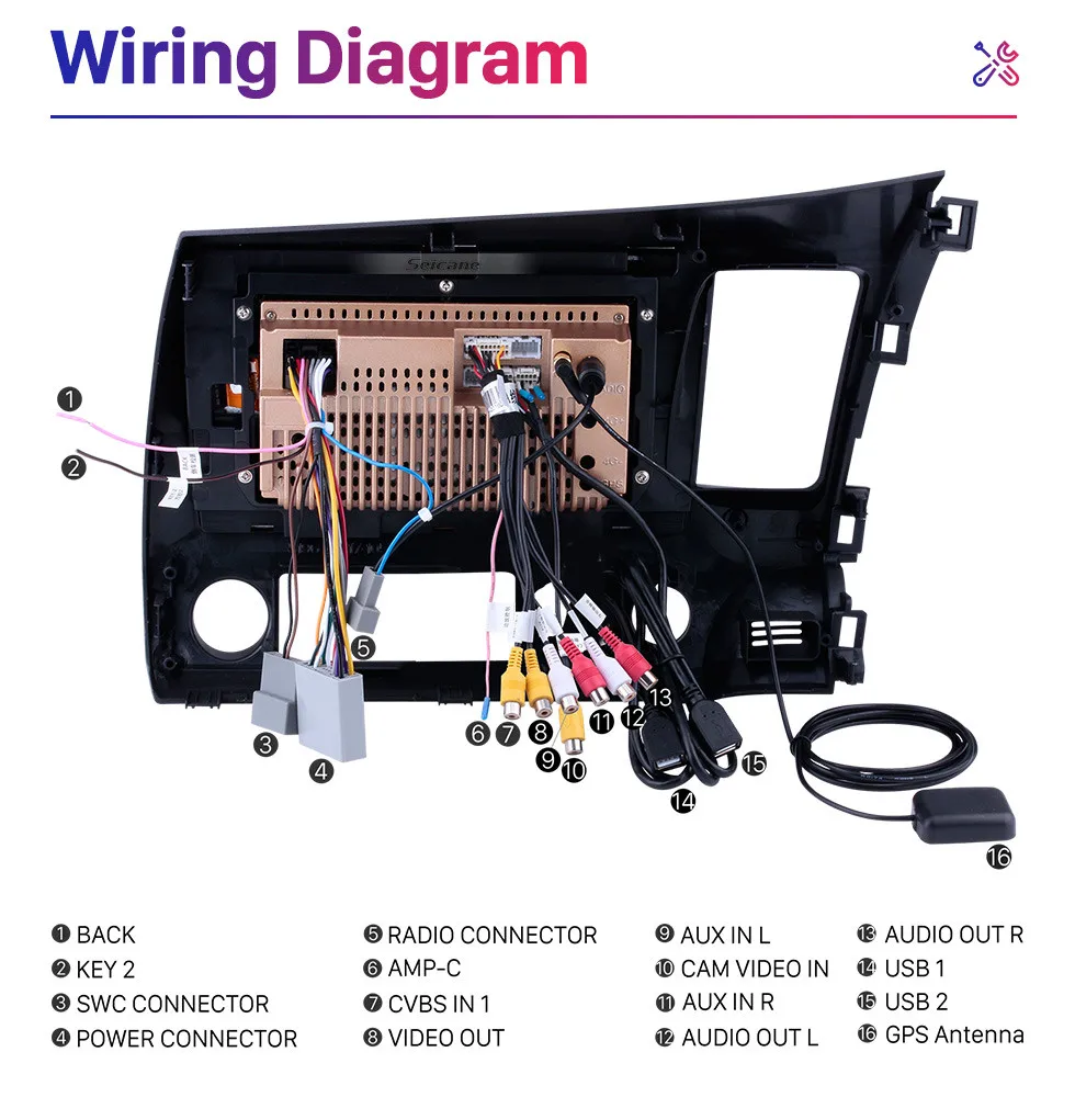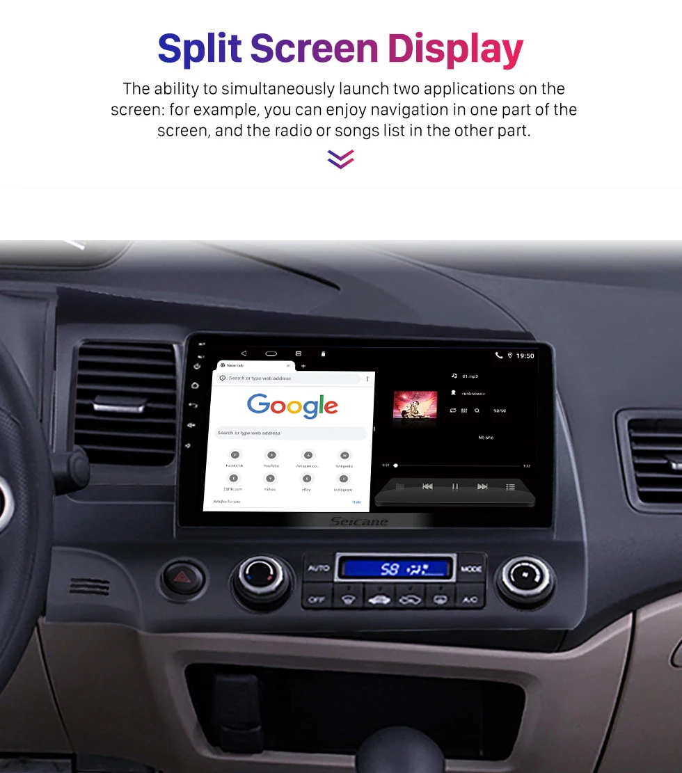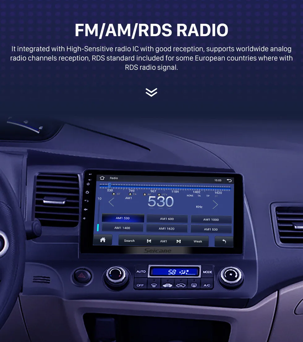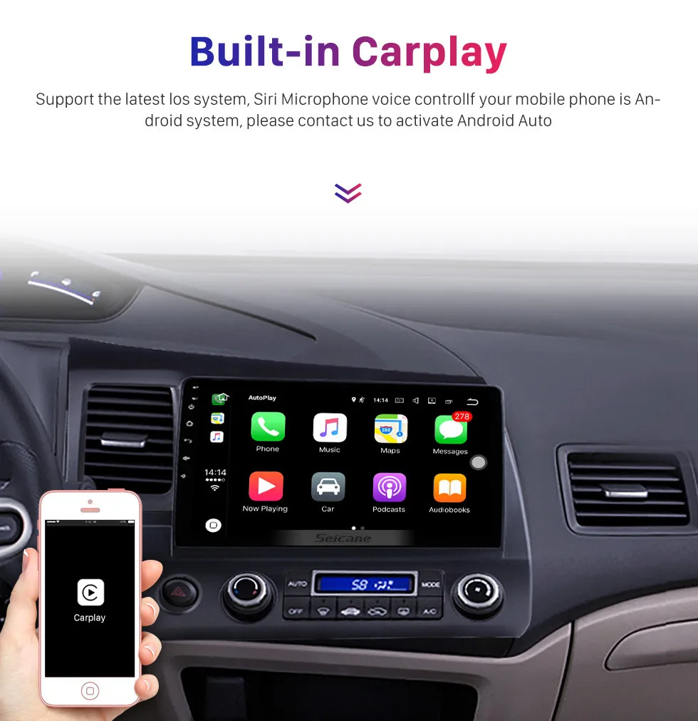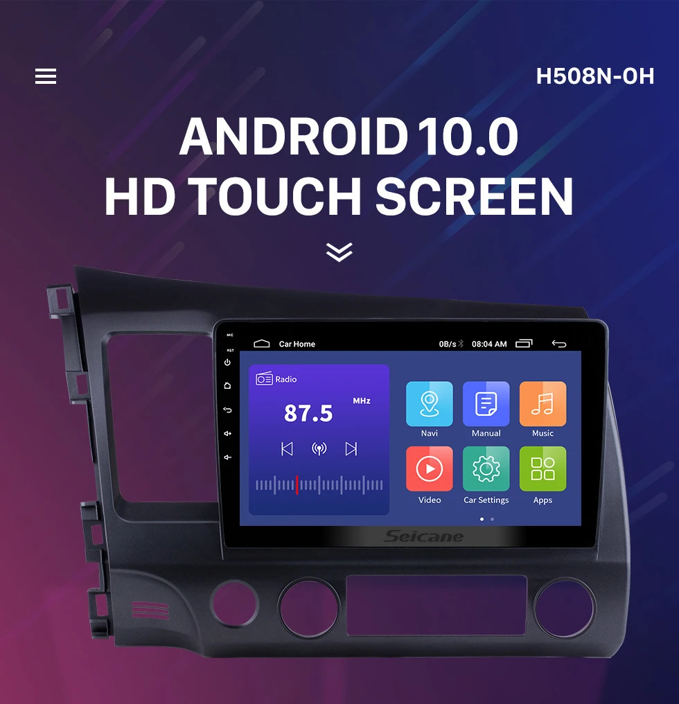 Автомобильный мультимедийный плеер Seicane, автомагнитола 2DIN на Android 10,1, 8 ядер, HD 10,0*1024, с сенсорным экраном 600 дюйма, GPS, для Honda Civic 2006, 2007-2011