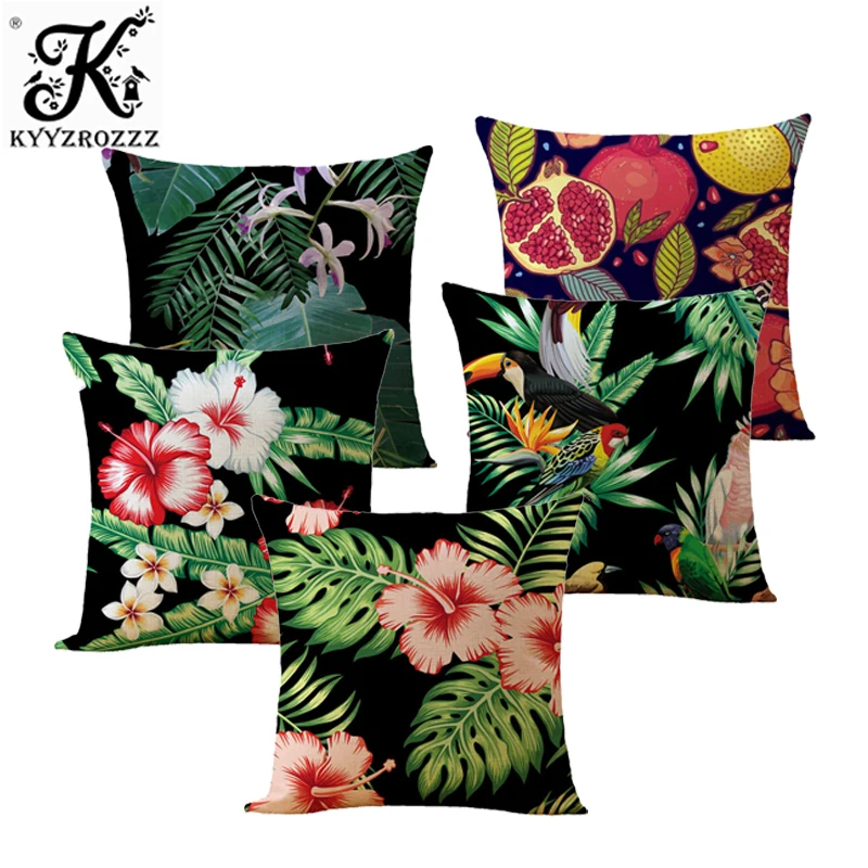 Зеленые тропические растения Подушка на голову с декоративным цветком и листья льняная наволочка квадратной формы подушки для украшения дома, дивана, автомобильный Декорации для офиса отеля