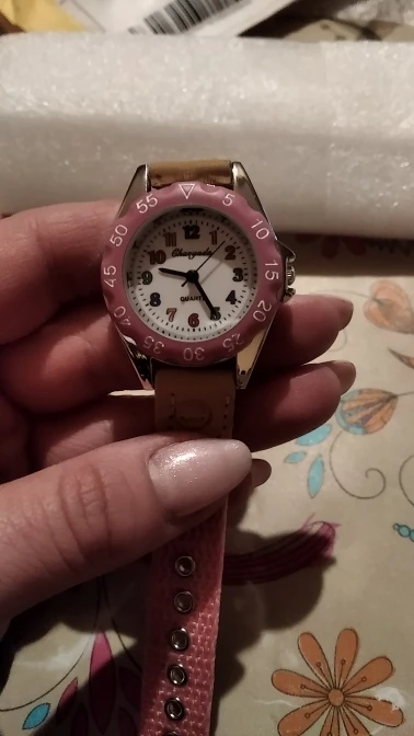 Не успел вытащить из упаковочного пакетика - отвалилось верхнее кольцо с цифрами. Нужно клеить. Металлические вставки в отверстия на ремешке снаружи гладкие, а изнутри царапаются. Нужно менять ремешок. А так-то да, симпатичные детские часики